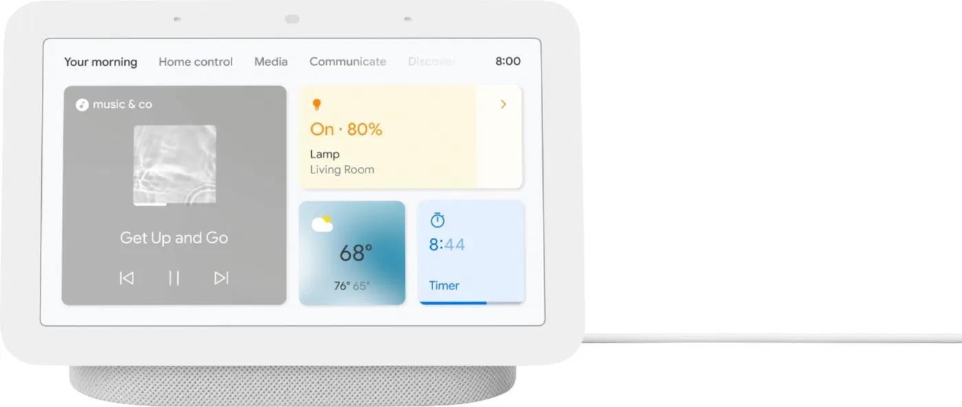 Nest Hub 2. generace na obrazovce přehledně zobrazí aktuální data z kompatibilních inteligentních zařízení a senzorů připojených v síti Google Home, jako jsou termostaty, světla či bezpečnostní kamery. Prostřednictvím asistenta můžete jednotlivá zařízení dálkově ovládat hlasem a rovněž získáte přístup k multimediálním zařízením pro snadné přepínání programů na chytré televizi nebo dálkové ovládání playlistu hudebních přehrávačů.