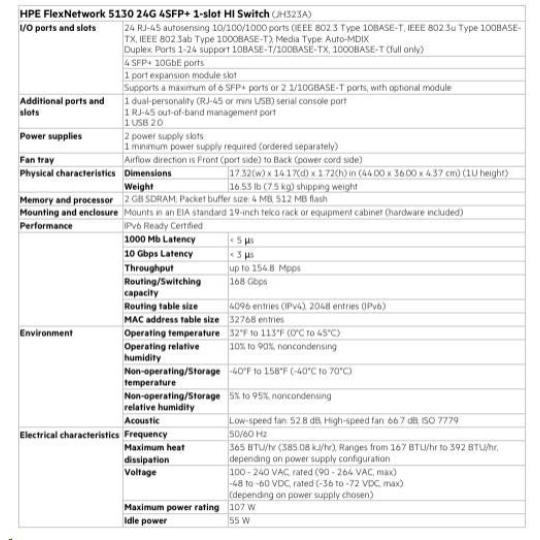 BAZAR - HPE FlexNetwork 5130 24G 4SFP+ 1-slot HI Switch (Must select min 1 power supply jd362B) JH323A RENEW - Rozbaleno