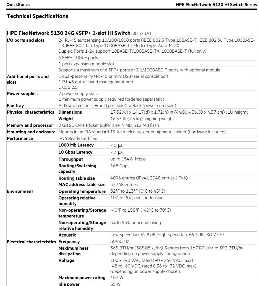 Software and support: HPE Networking SupportEnvironmental Specification