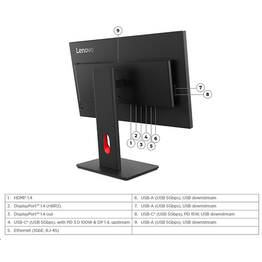 | Konektivita | 1x HDMI 1.4, 1x DP 1.4 (HBR2), 1x DP 1.4 Out, 1x USB-C (5Gbps, DP 1.4 Alt Mode HBR2) |
