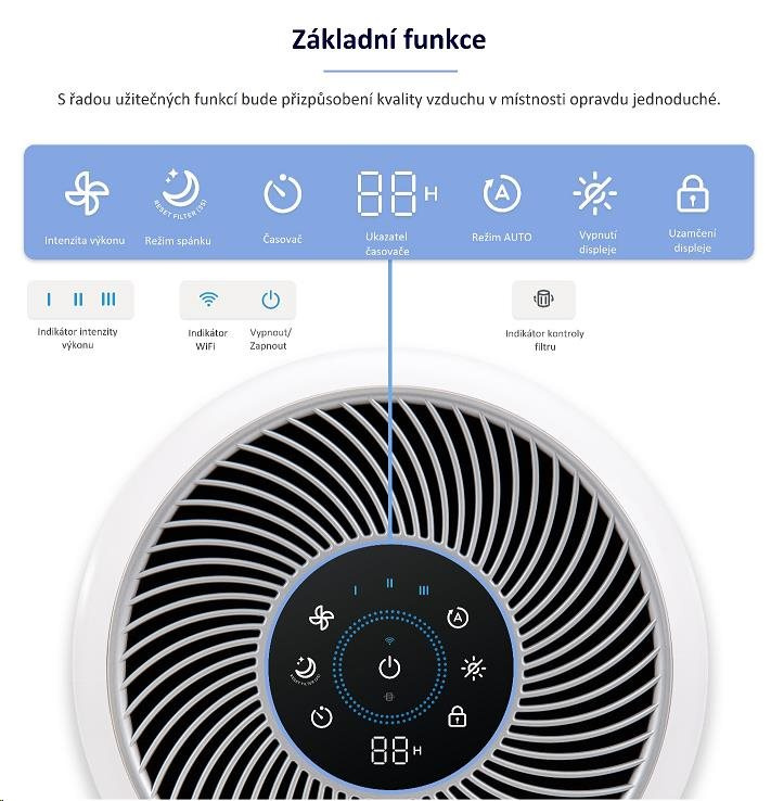 • Odstraňuje až 99,97 znečištěných částic vzduchu
