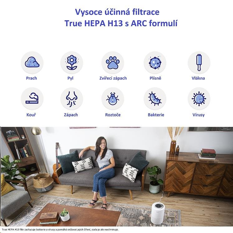 • Kvalitní sytém filtrace – filtre HEPA H13 a ARCTM formula