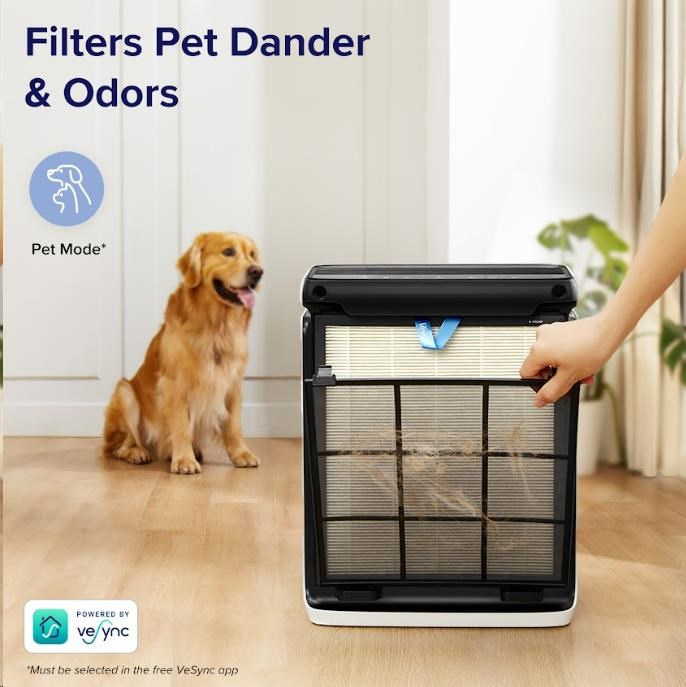 Tato čistička vzduchu je ideální pro majitele domácích mazlíčků, protože její velký vstup vzduchu ve tvaru písmene U pomáhá předcházet ucpávání srstí, takže filtrační systém může vždy účinně plnit svou práci. Stačí klepnout na režim Pet Mode v bezplatné aplikaci VeSync a čistička Vital 100S bude střídavě používat střední a vysoké otáčky, aby se snížil zápach a odstranila se srst domácích mazlíčků. Tím udrží váš domov svěží a energeticky úspornější. Zároveň jsou ty největší nečistoty zachyceny na umývatelný předfiltr, který jednoduše umyjete a ušetříte opotřebení filtru a tím i vaši peněženku.