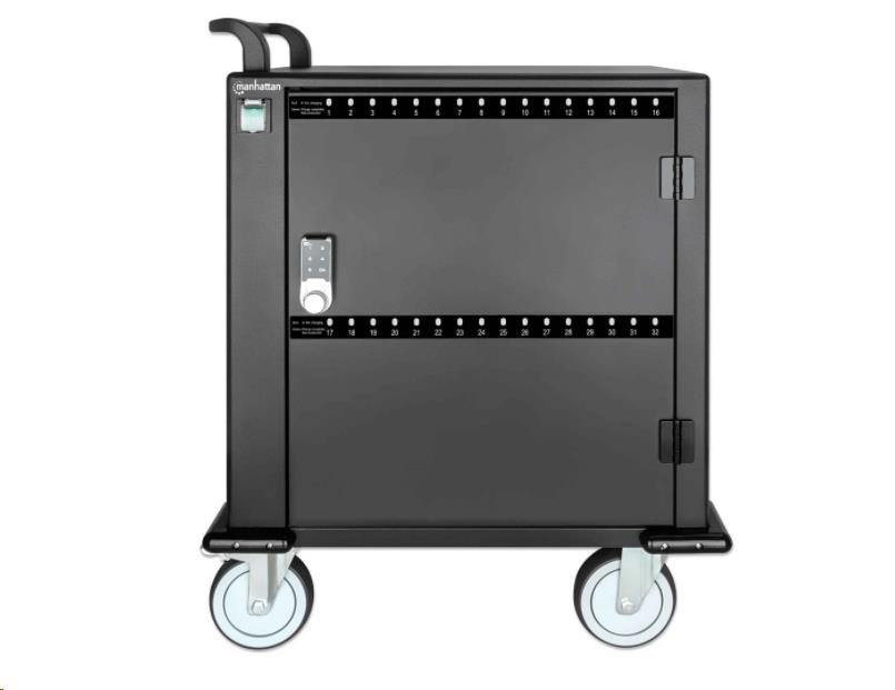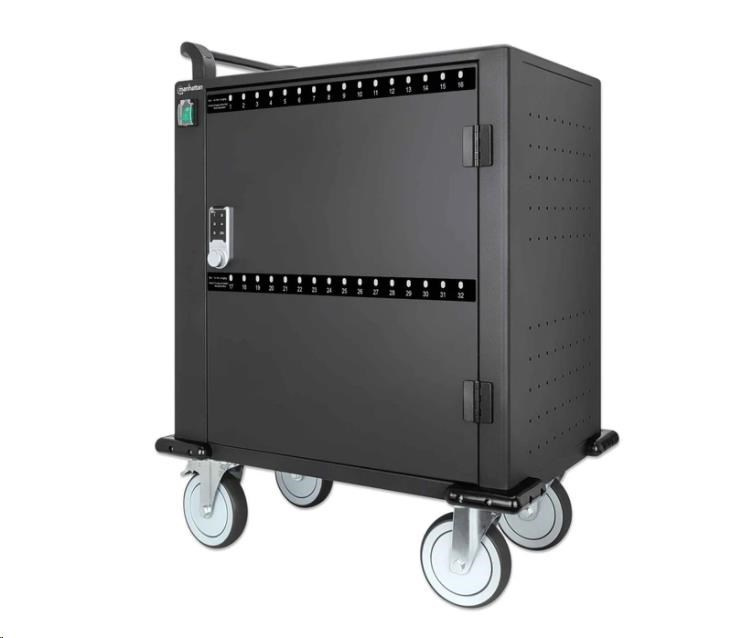 BAZAR - MANHATTAN nabíjecí vozík - 32 portů, 576 W, přepěťová ochrana, tichá ventilace, kovové pouzdro, černá - Poškozen