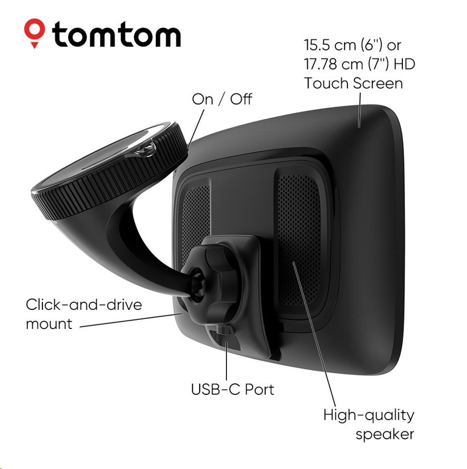 Prohlédněte si svou trasu ve velmi vysokých detailech na 6" / 7" dotykovém displeji, který se může chlubit nejlepším rozlišením na trhu. A díky ovládání pomocí hlasových příkazů můžete zařízení TomTom GO Expert Plus ovládat, aniž byste museli sundat ruce z volantu. Snadno použitelný držák Click-and-Drive navíc drží GPS navigaci bezpečně na místě.