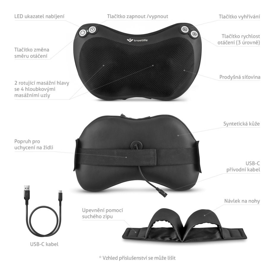 TrueLife RelaxBack B3 Charge – masážní polštář s dobíjecí baterií