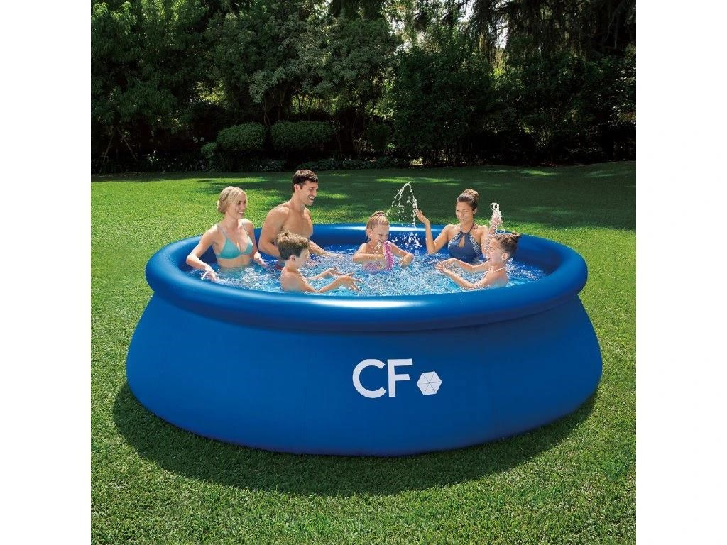 Připravte se na teplé počasí a nekonečné hodiny vodních radovánek na vlastním zahradě se samonosným nadzemním bazénem CF QUICK. Tento nadzemní bazén v modré barvě je navržen pro jednoduchou montáž a může být připraven během několika minut. Stačí jen připravit to správné místo na bazén, rozvinout bazénovou podložku, rozbalit bazén, nafouknout prstenec a napustit vodu. Stoupající voda bazén sama postaví. Tento nadzemní kruhový bazén s průměrem 366 cm je ideální pro celou rodinu a díky absenci pevných prvků je vhodný i pro menší děti (děti musí zůstat pod dohledem dospělé osoby). Bazén je vyroben z odolných a super pevných PVC materiálů, aby bylo zajištěno, že zůstane stát i přes veškerou zábavu, kterou tento bazén nabízí.