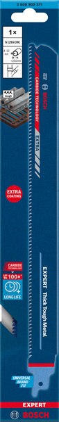 Vydrží až 100× déle při řezání odolných materiálů pilový list Bosch S1122BF - Řezání silných kovů, jako jsou ocelové profily nebo těžké litinové trubky, pravděpodobně není oblíbená část vaší práce. Instalatéři, renovátoři i demoliční pracovníci vědí, že je to náročný úkol, který i s výkonnou pilou ocaskou vyžaduje fyzickou sílu a spoustu úsilí. Pilový list EXPERT Thick Tough Metal nejen řeže silný kov, ale nabízí výjimečnou životnost i při tom nejnáročnějším používání. List s technologií Bosch Carbide Technology má velmi vysokou odolnost. Zuby z toho nejtvrdšího kovu jsou navařeny na extra robustní široké tělo ze silné oceli – ideální pro rovné řezy a výdrž. Profesionálové, kteří dosud karbidové listy Bosch nepoužívali, budou ohromeni tím, co může pilový list do pily ocasky Bosch EXPERT Thick Tough Metal vydržet. S pilovým listem do pily ocasky Bosch EXPERT Thick Tough Metal si usnadníš řezání silné oceli a litiny. Kompatibilní se všemi pilami ocaskami s upínáním pro stopku S.