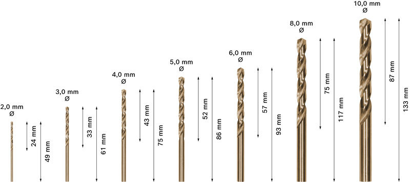 Vydrží až 2× déle než vrták Bosch PointTeQ - Potřebujete odolné vrtáky, abyste mohli začínat vrtání bez vodicích otvorů? Vyzkoušejte vrtáky PRO Metal HSS-G do kovu. Pomohou vám efektivně vrtat a zakládat otvory přesně tam, kde je potřebujete. Vrtáky PRO Metal HSS-G jsou skvělou volbou pro stavební dělníky a montéry, kteří potřebují vrtáky do kovu s dlouhou životností pro vrtání do legované i nelegované oceli, neželezných kovů, litiny, do plastů i dřeva. Vyrobili jsme je z prvotřídní rychlořezné oceli a nabrousili je pro pevnost, odolnost vůči teplu a přesnost. Přidali jsme rozdělený hrot, který vám pomůže s přesným začátkem vrtání. Válcová stopka je kompatibilní se všemi vrtačkami s tříčelisťovým sklíčidlem.