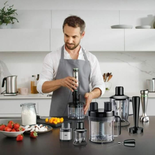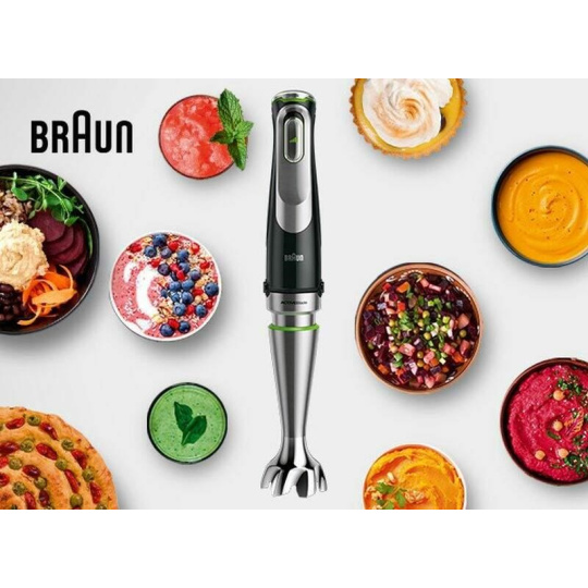 Tyčový mixér Braun MQ 9135BK MultiQuick 9 dokáže díky technologiím ActiveBlade a PowerBell vytvořit nejjemnější kulinářské výtvory. Se 3 režimy rychlostí iMode a technologií proti frkání surovin SplashControl zvládne v kuchyni téměř vše.
