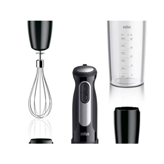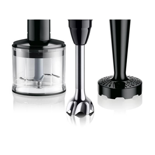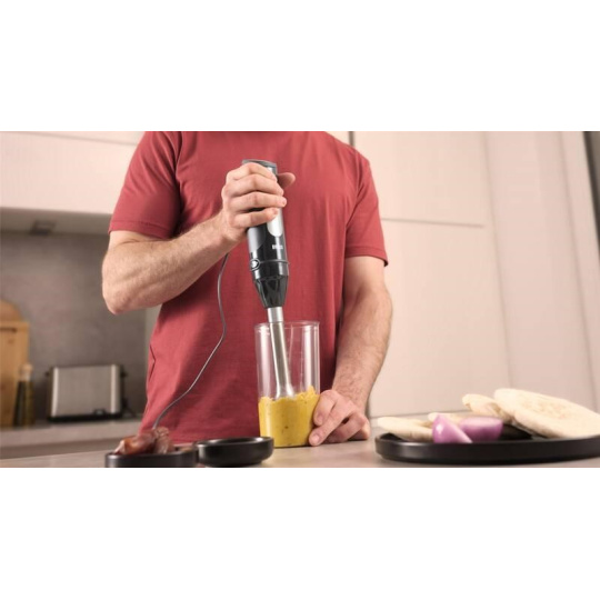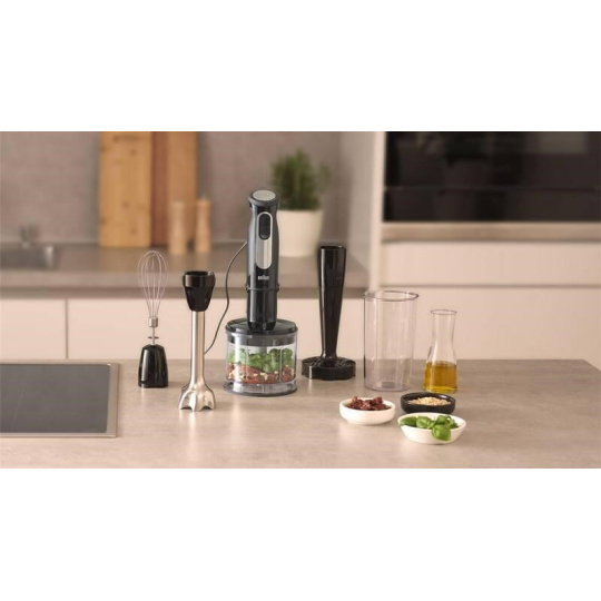 Ponorný mixér Braun MQ55.307M MultiQuick 5 Pro se stane vaším nepostradatelným pomocníkem v kuchyni. Potěší svým špičkovým výkonem, který dosahuje 1 000 W. Vybrat si můžete z 25 rychlostí a režimu Turbo, který z přístroje během okamžiku vytěží maximum. Manipulaci s přístrojem usnadňuje přítomnost ergonomické rukojeti. Samozřejmostí je velmi jednoduché ovládání, které si snadno osvojíte. Výměnu jednotlivých nástavců a příslušenství zjednodušuje systém EasyClick Plus.
