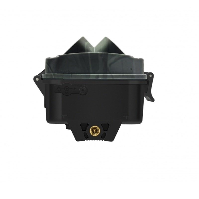 Fotopast s vysokým rozlišením CMOS 13MP a objektivem 90°. Záznam 1-3 foto až 48 MP nebo 3s-10min video až 4K/10fps, 3xPIR senzor 120°/ odezva 0,2s/ 40 Black IR LED do 20m, vnitřní 2" LCD, SD do 128GB, 4x nebo 8x AA baterie, rozměry 138x97x83mm, hmotnost 264g. Voděodolný přístroj dle IP66, barevné denní záběry a černobílé v noci, záznam datumu, času, teploty a fáze měsíce, PIR senzor má 3 citlivosti, interval mezi záběry 5s-60min, časosběrné záběry 3s-24h, stand-by 0,3mA až 6 měsíců, mikrofon, reproduktor. Slot SD, miniUSB, DC in 6V/2A pro externí zdroj, stativový závit, možnost uzamčení, design camouflage. V dodávce kabel USB, řemen a kovové uchycení s kulovou hlavou. BlackVision LED jsou vhodné i pro ostrahu proti zlodějům - nejsou vidět ani při přímém pohledu na fotopast při expozici..