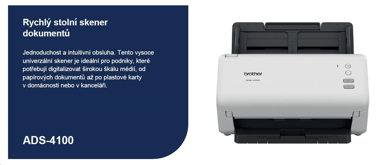 BROTHER skener ADS-4100 DUALSKEN A4 35ppm/70dual 600x600 60ADF USB