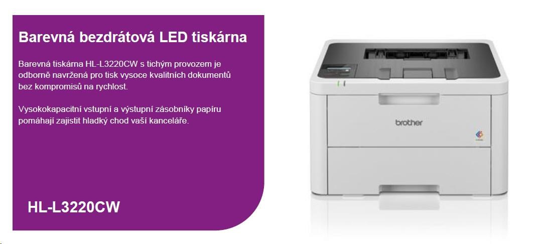 BROTHER tiskárna color LED HL-L3220CW - A4 18ppm 256MB 250listů 600dpi WIFI USB