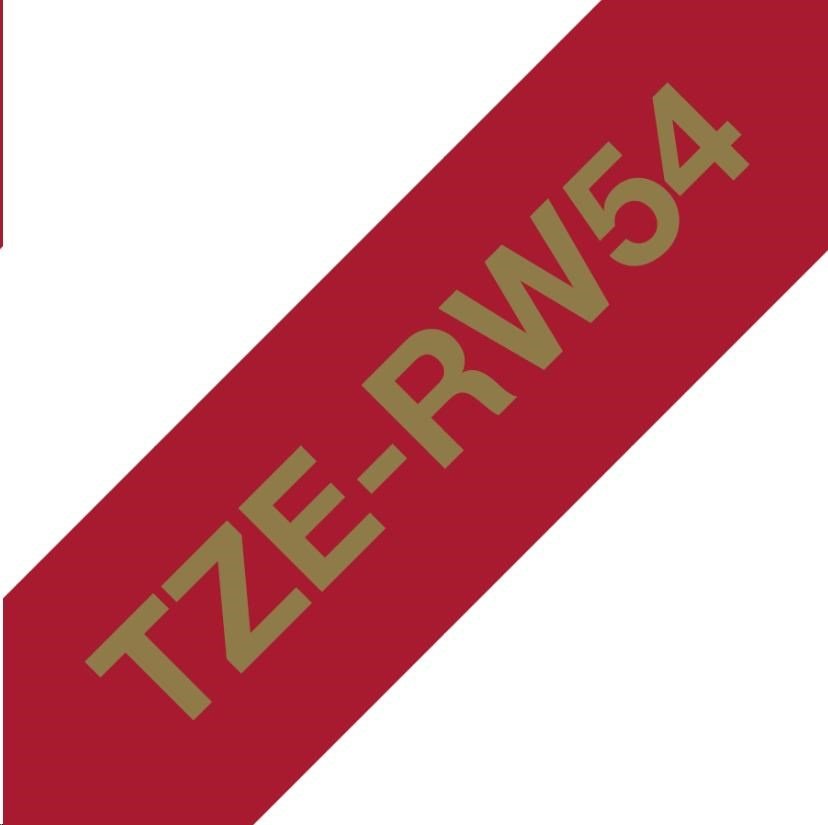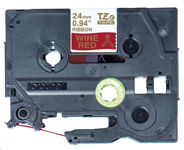 BROTHER TZE-RW54 - kazeta TZ šířky 24mm, TEXTILNÍ páska 4m- pro tvorbu dárků - NELEPÍCÍ -ČERVENÁ PÁSKA ZLATÝ POTISK gold