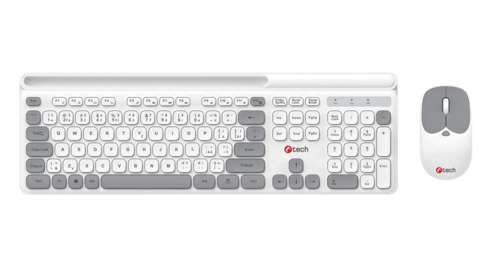 C-TECH klávesnice s myší WLKMC-05W, Bezdrátový set 2.4GHz, CZ, Bílá