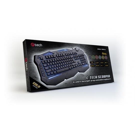 C-TECH klávesnice SCORPIA V2 (GKB-119), herní, CZ/SK, 7 barev podsvícení, programovatelná, černá, USB