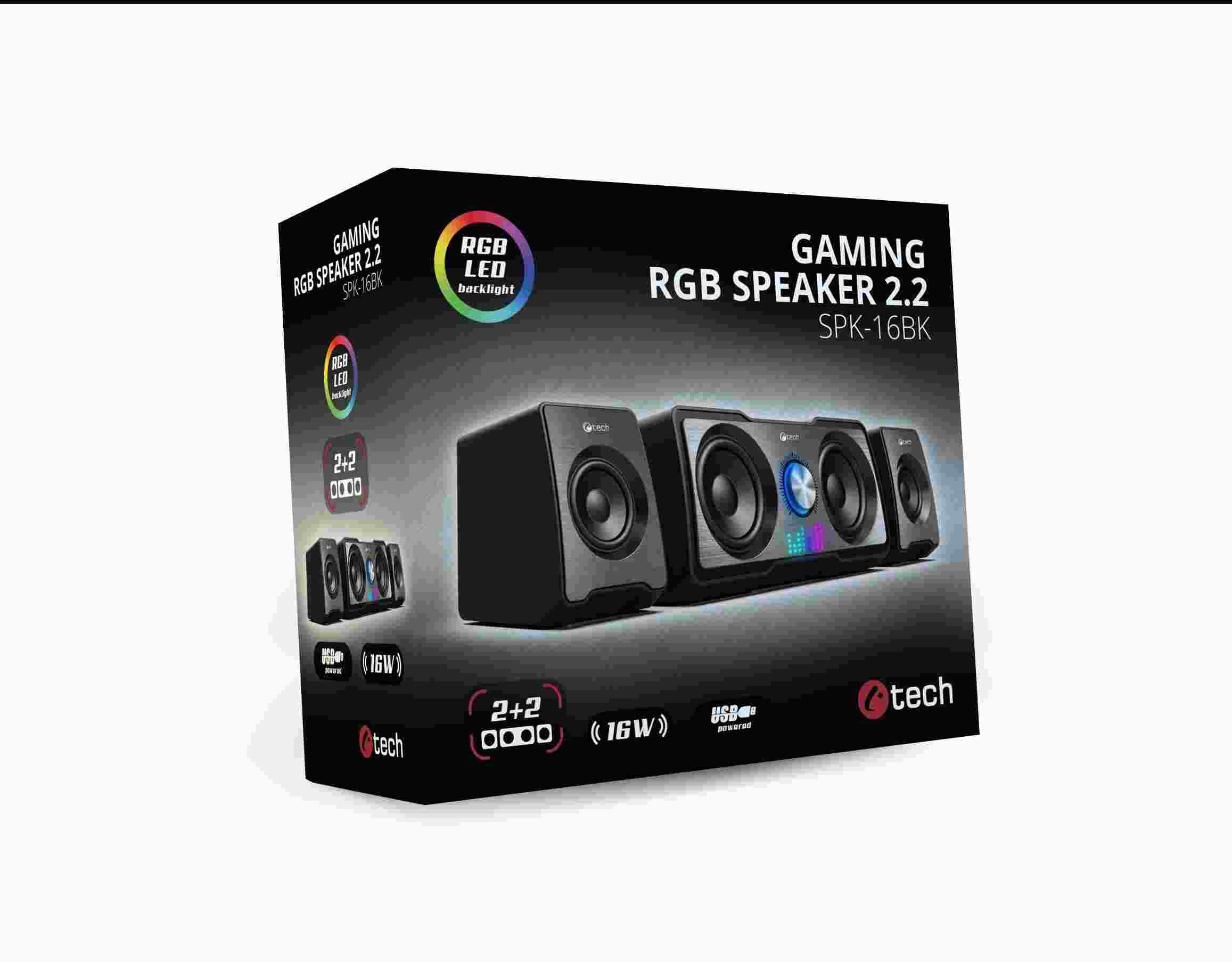 Kompaktní PC reproduktory C-tech SPK-16WH 2.2 vám zprostředkují kvalitní zvuk s výkonem 16W a frekvenčním rozsahem 150-20kHz. Díky unikátní kombinaci měničů 2+2 je reprodukovaný zvuk bohatší a více dynamický, takže si jej využijete nejen při poslechu oblíbených skladem, ale i při hraní her. O jedinečnou atmosféru při poslechu hudby se postará automatické RGB podsvícení. K ovládání hlasitosti poslouží regulátor nacházející se na jednom z reproduktorů. Tento regulátor slouží k zapnutí a vypnutí zařízení. Připojení soustavy k zařízením zajistí kabel s 3,5mm jackem, napájení zase USB kabel.