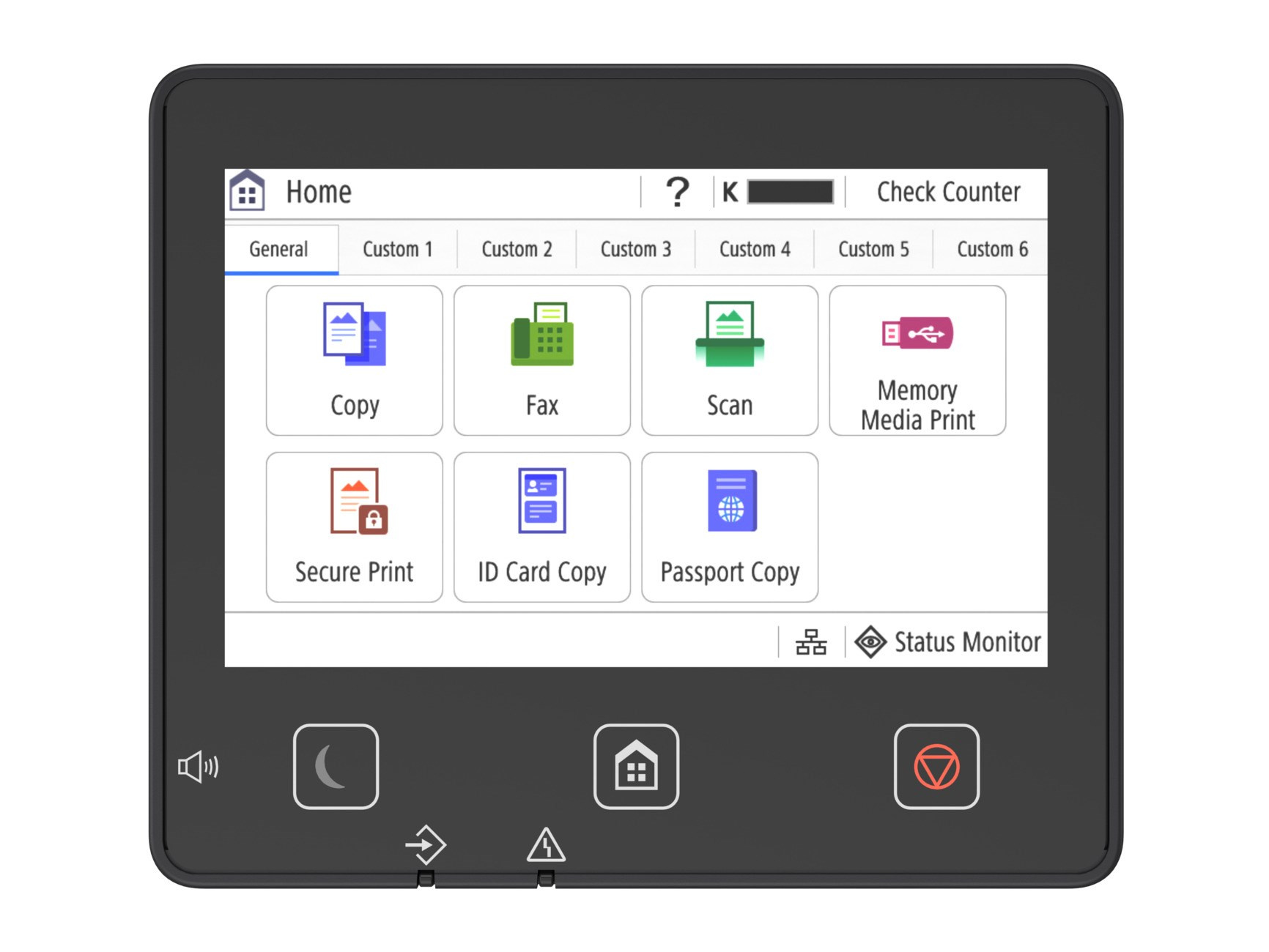| Další funkce | Přednastavené poměry, Oboustranné, Hustota, Typ originálu, Oboustranný originál, Třídění, N na 1, Ostrost, Mazání rámečku, Kopie ID, Kopie pasu, Barevný režim, Rezervní kopie |