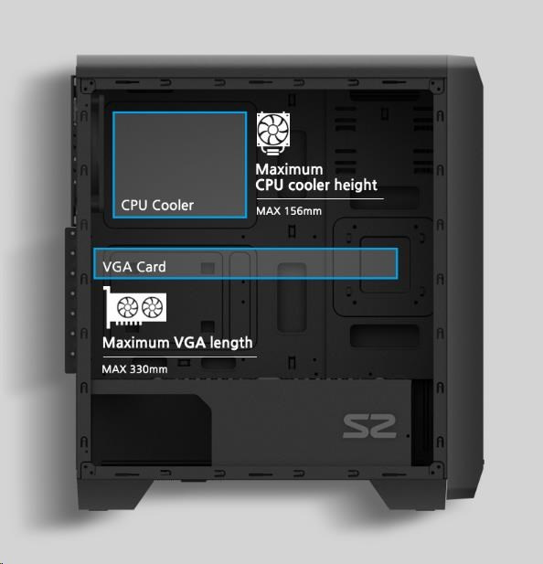 case Zalman miditower S2, ATX/mATX/Mini-ITX, bez zdroje, USB3.0, černá
