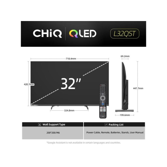 CHiQ L32QST TV 32", QLED, Full HD, Google TV, Frameless, Dolby Audio, dbx-tv, HDR 10