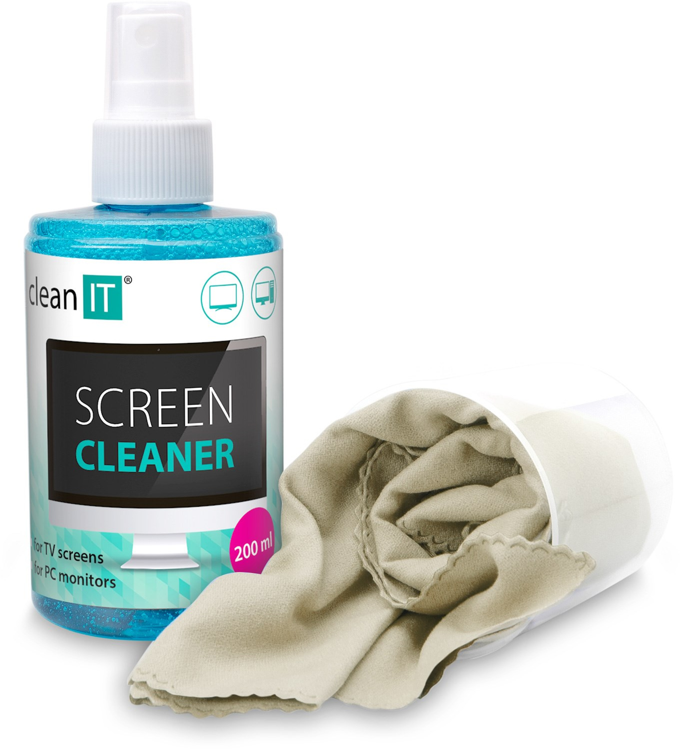 CLEAN IT Čistící roztok na obrazovky 200ml s utěrkou ve víčku