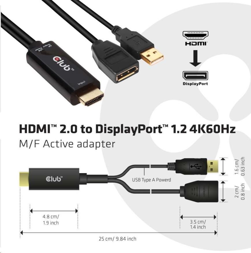 Club3D adaptér aktivní HDMI na DisplayPort 4K60Hz, M/F