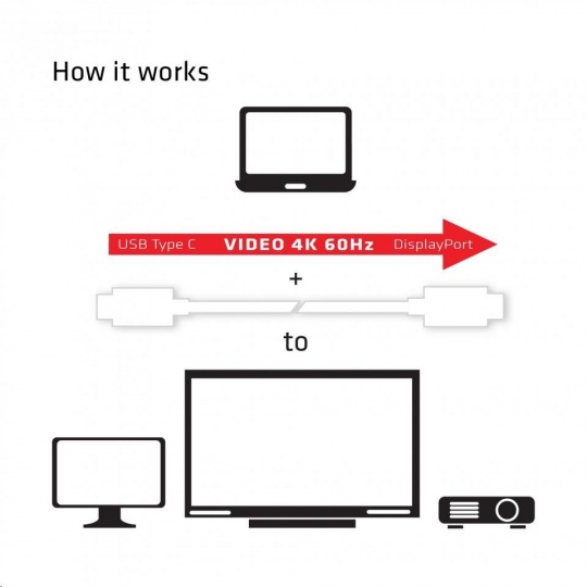 CAC-1517 Club 3D je převodník signálu DisplayPort ™. Adaptér USB 3.1 Type C na DisplayPort ™ 1.2 UHD je nejjednodušší řešení pro připojení zdrojového zařízení obsahující port USB 3.1 typu C s alternativním režimem DisplayPort ™ k (U)HD monitoru, televizoru nebo projektoru s podporou rozhraní DisplayPort ™ 1.2. Napájený portem USB typu C adaptér nevyžaduje žádné externí napájení a je ideální pro použití s nejnovějšími notebooky / MacBookem (Pro) a tablety.