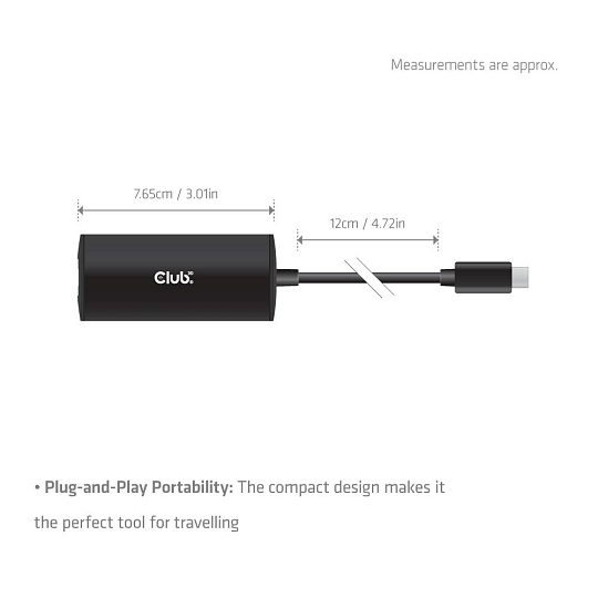 Club3D Adaptér USB-C na RJ45, 10Gb, M/F, 12cm