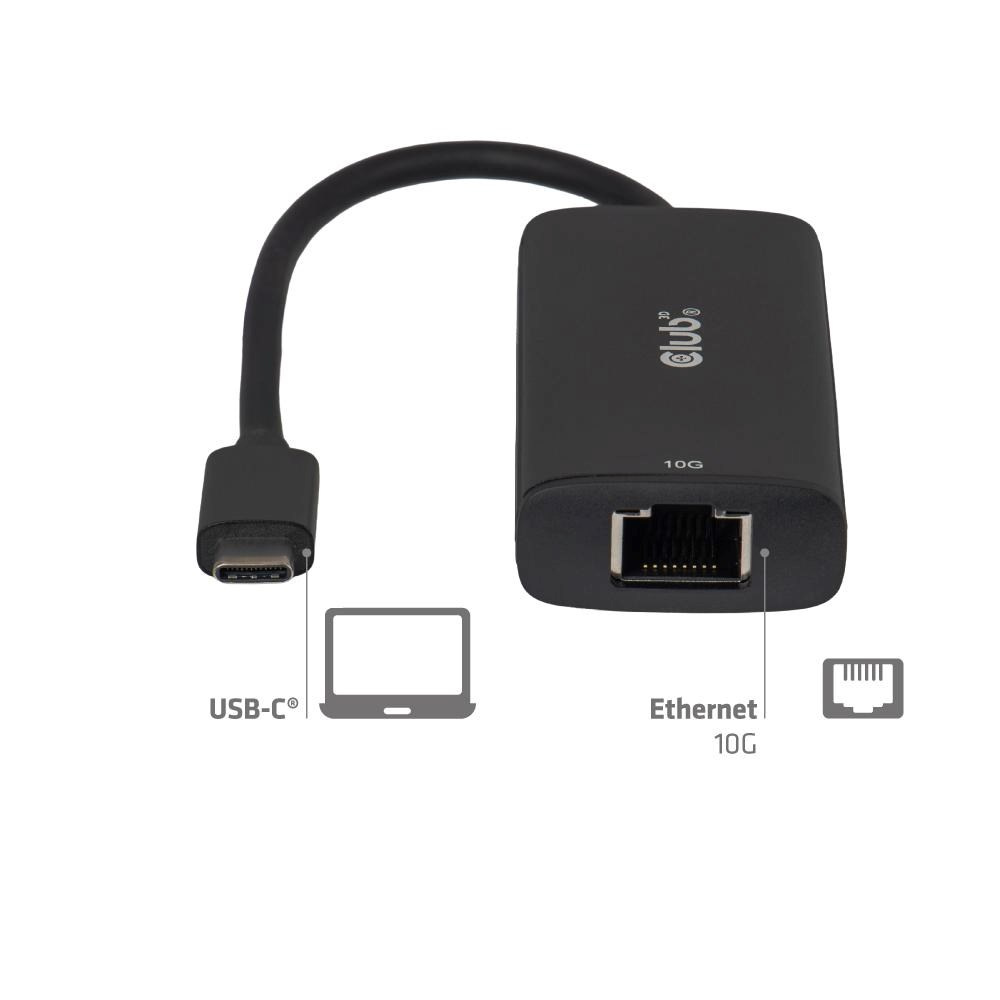 Club3D Adaptér USB-C na RJ45, 10Gb, M/F, 12cm