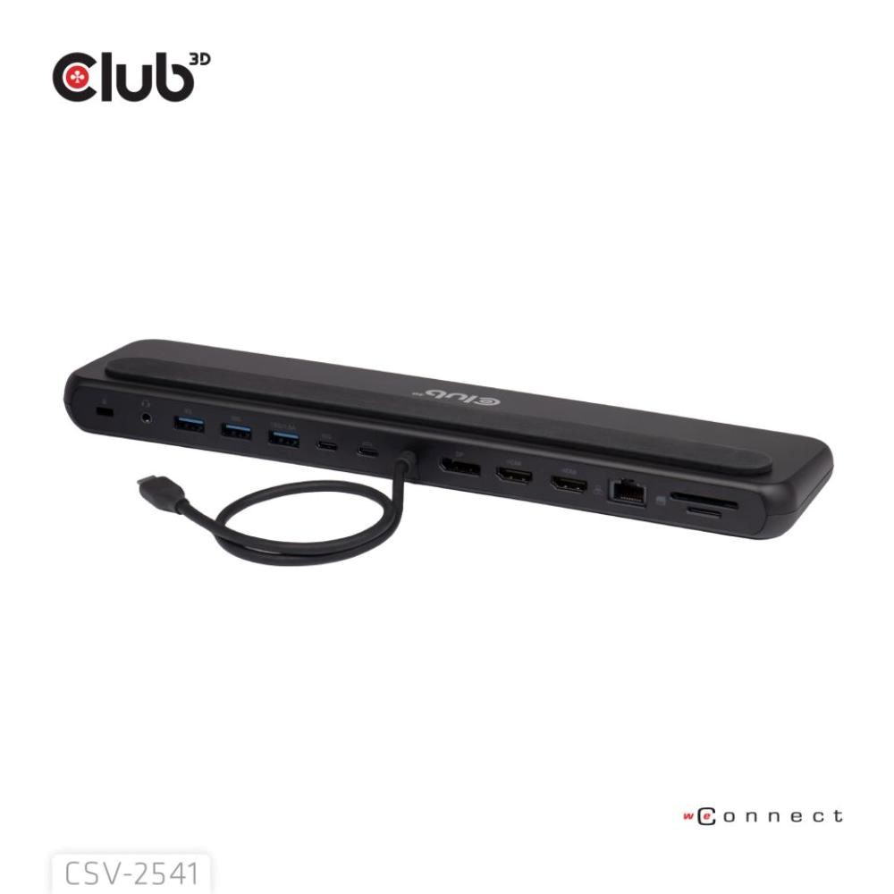 CSV-2541 je dokovací stanice USB Type-C 10Gb/s 12 v 1 s trojitým displejem, 2x HDMI, 1x DisplayPort, 1x datový port USB Type-C, 3x USB Type-A, RJ45, čtečka karet, 3,5mm audio port a nabíjecí port USB Type-C, která představuje ideální řešení pro rozšíření hostitelského počítače USB Type-C nebo Thunderbolt, zejména pro hostitele s jediným portem USB Type-C. Díky konstrukci se spodním držákem může být stabilním stojanem pro vaše notebooky. Dodává se se 100W nabíječkou a kabelem, který je součástí balení.