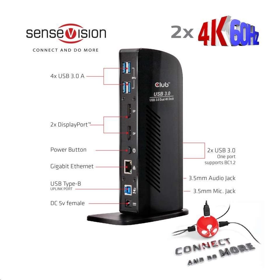 CSV-1460 - The SenseVision USB 3.1 Gen 1 Dual Display 4K 60Hz Docking Station is designed to satisfy all your connectivity demands. It provides no less than 6 USB 3.1 Gen 1 Ports, Headphone connection, Microphone connection, Gigabit Ethernet port and 2 x Displayport™ outputs.