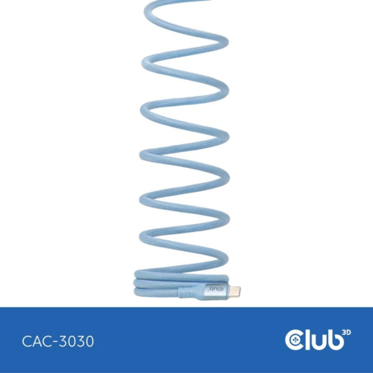 Club3D Kabel magnetický USB-C, 240W PD3.1, 480 Mbps, 2m, modrá