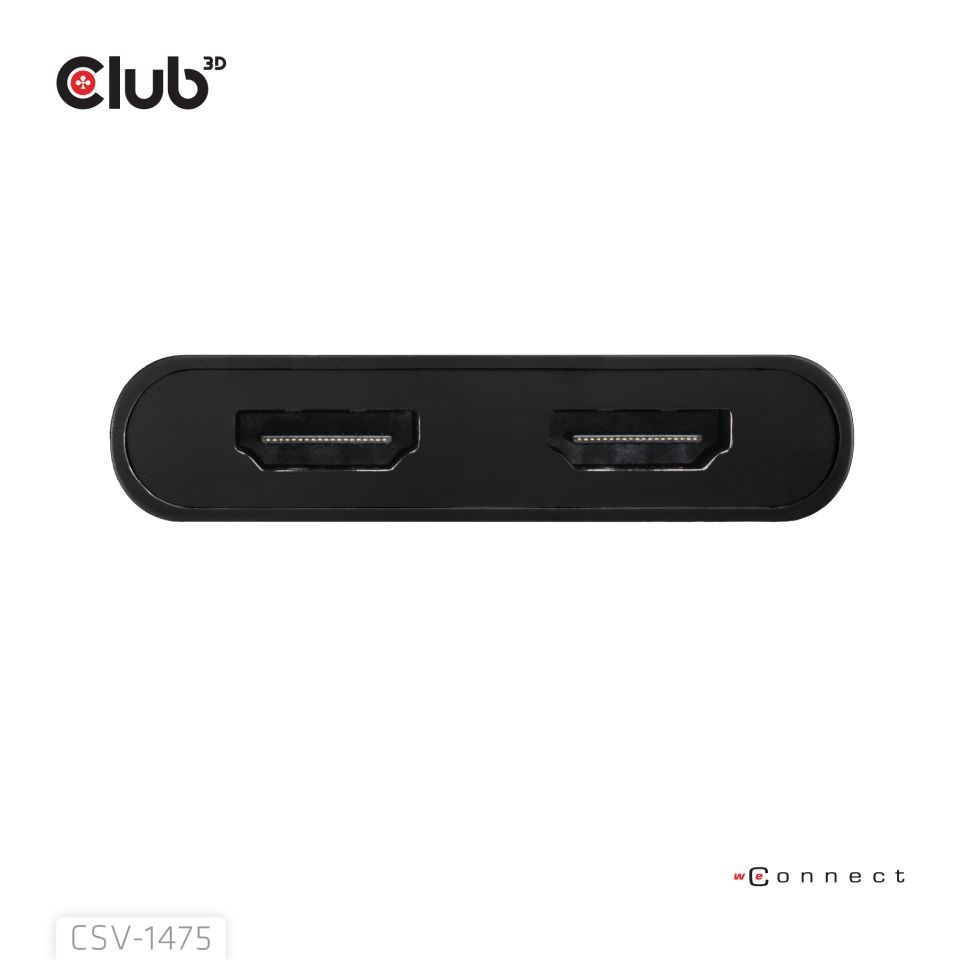 Club 3D CSV-1475 USB-C/A) na duální HDMI (4K60Hz) Video Splitter s DisplayLink® poskytuje nejpokročilejší a nejefektivnější řešení. Podporuje max. jeden 4K60Hz nebo duální 4K60Hz s podporou Extended Desktop.