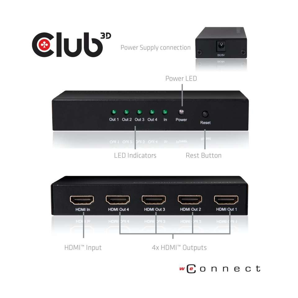 Club3D Video splitter 1:4 HDMI 2.0 4K60Hz UHD, 4 porty