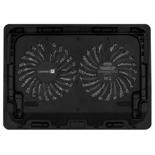 Chladicí podložka pod notebook CONNECT IT "FrostBreeze" CCP-1910-BK, která vybavená dvěma ventilátory s modrým LED podsvícením, celokovovou chladící mřížkou a výškovým čtyřstupňovým polohováním. Kompatibilní s notebooky do 15,6".