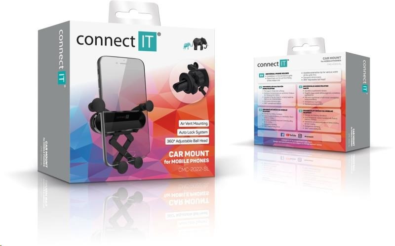 Pozice ve větrací mřížce splňuje bezpečnostní podmínky pro umístění mobilního telefonu v automobilu, kdy telefon nebrání řidiči ve výhledu. Instalace je velmi jednoduchá - postačí pouze zasunout držák do větrací mřížky a je hotovo. Pak už stačí telefon jen vložit do držáku, který jej pomocí čtyřbodového paralelogramu automaticky a bezpečně aretuje.