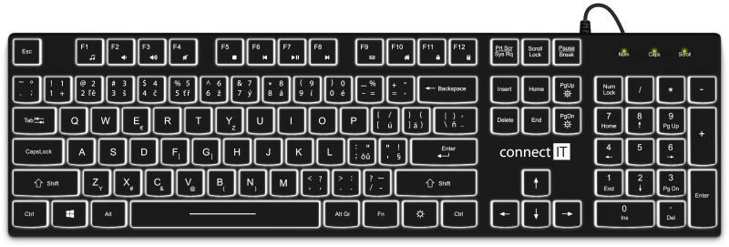 CONNECT IT kancelářská podsvícená klávesnice Chocolate WhiteStar, CZ + SK verze, černá