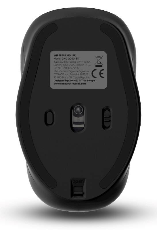 CONNECT IT LONG LIFE bezdrátová tichá myš, USB, (+ 2x AA baterie zdarma), černá