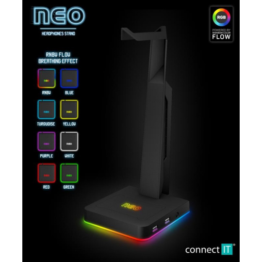 CONNECT IT NEO Stand-It RGB stojánek na sluchátka + USB hub, černá