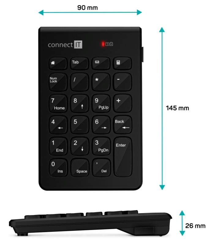 CONNECT IT NumCalc bezdrátová numerická klávesnice, 1x AAA baterie, černá