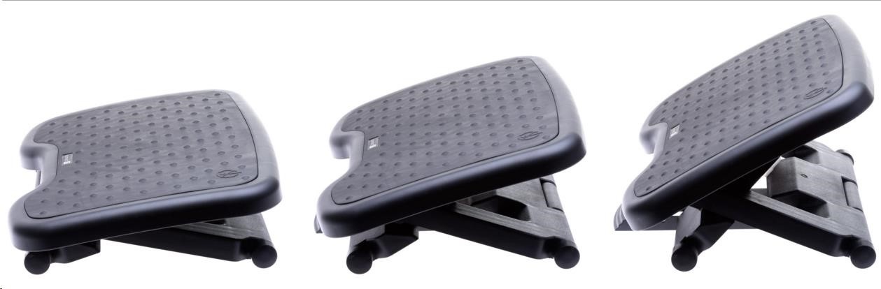 Popis produktu: Polohovatelná podložka pod nohy Nastavitelná výška a úhel pro maximální pohodlí a komfort Výška: 110 - 124 mm Protiskluzové podložky pro vetší stabilitu Barva: černá Masážní hrbolatý povrch pro unavené nohy.