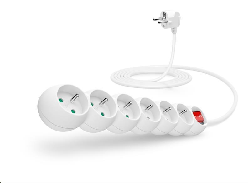 Prodlužovací kabelový přívod na 230V je vybaven hlavním síťovým vypínačem, který při vypnutí zcela odpojí od přívodu elektrické energie všechny zapojené spotřebiče najednou. Extra výbavou je dětská ochrana všech zásuvek – zásuvky jsou přístupné pouze v případě zasunutí obou vidlic najednou, nelze tedy zasunout jednotlivě např. pouze šroubovák nebo pletací jehlici. Díky pootočení zásuvek o 45° je možné používat i objemnější napájecí adaptéry nebo úhlové koncovky. Výsuvné očko v horní části zásuvkového modulu umožňuje zavěšení nebo pevnou instalaci na stěnu (s výhodou využijete např. v dílnách a garážích). Výrobek byl testován a certifikován v evropském testovacím centru a splňuje nejpřísnější bezpečnostní požadavky a nejnovější normy, takže umožňuje zapojení spotřebičů o celkovém příkonu až 2500 W.