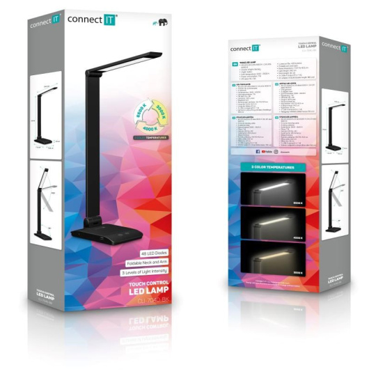 Díky sklopnému rameni a krku nastavíte dokonalý úhel pro jakoukoliv práci. Lampička disponuje USB-A výstupem s výkonem 5 W a dvěma praktickými dotykovými spínači, které umožňují zapnout/vypnout lampu, nastavit 3 úrovně jasu světla nebo nastavit barevnou teplotu světla ve 3 různých úrovních (3000/4000/6500 K).