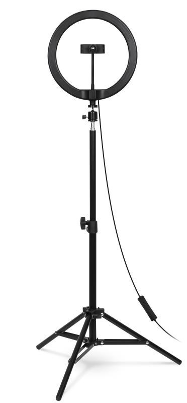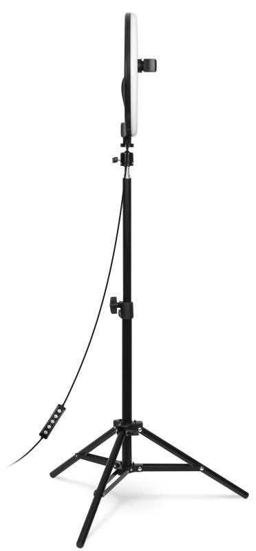 | Obsah balení | Kruhové LED světlo Přívodní kabel s dálkovým ovládáním Flexibilní držák mobilního telefonu Stativ s kulovou hlavou Green screen Návod k obsluze |