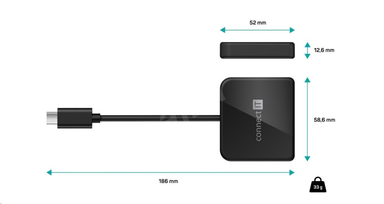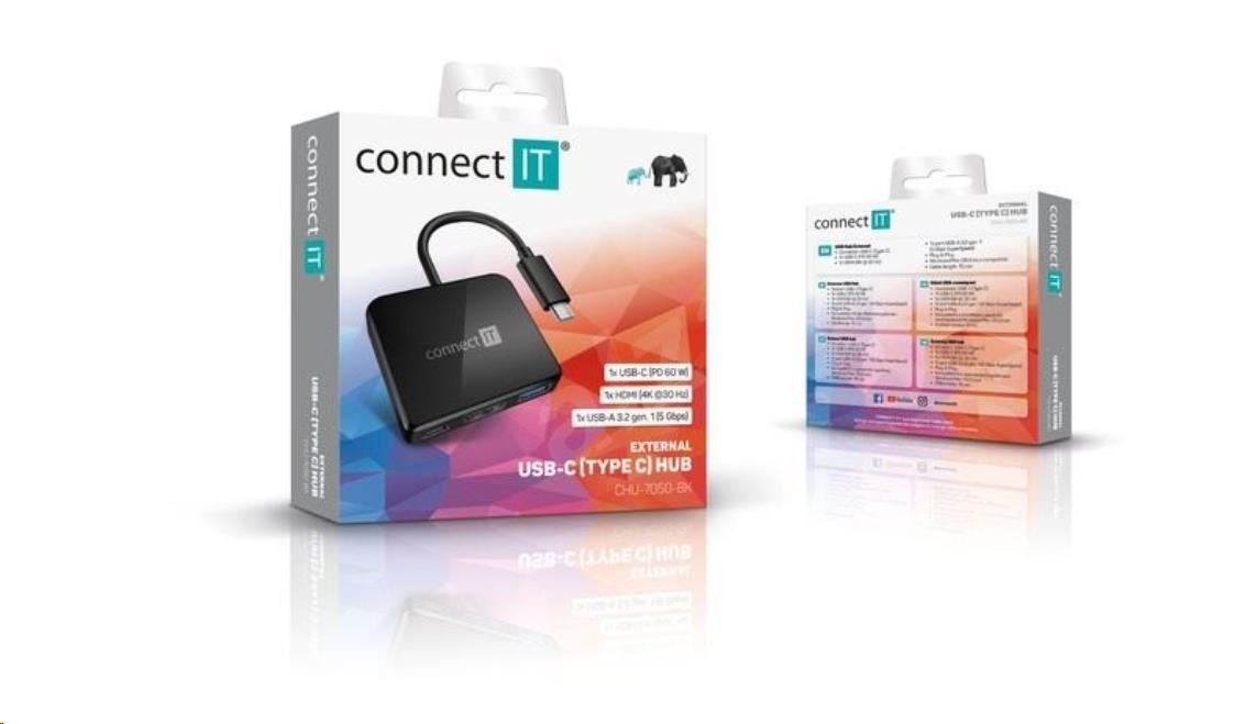 CONNECT IT CHU-7050-BK USB-C hub 3in1 (USB-C, USB-A, HDMI), black