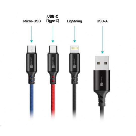 CONNECT IT Wirez 3in1 USB-C & Micro USB & Lightning, 1,2 m