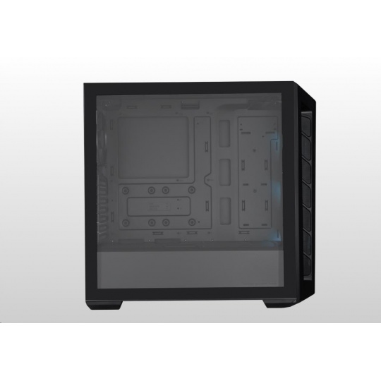 MasterBox MB520 ARGB je optimální herní počítačová skříň formátu ATX, ve které se můžete pochlubit osvětlením komponent a zároveň udržet systémy chladné. Přední panel DarkMirror je o odstín tmavší, aby dodal předinstalovaným ventilátorům ARGB ostřejší kontrast. Na každé straně předního panelu se shora dolů rozprostírá ventilační síťka, která zajišťuje značné proudění vzduchu uvnitř skříně.