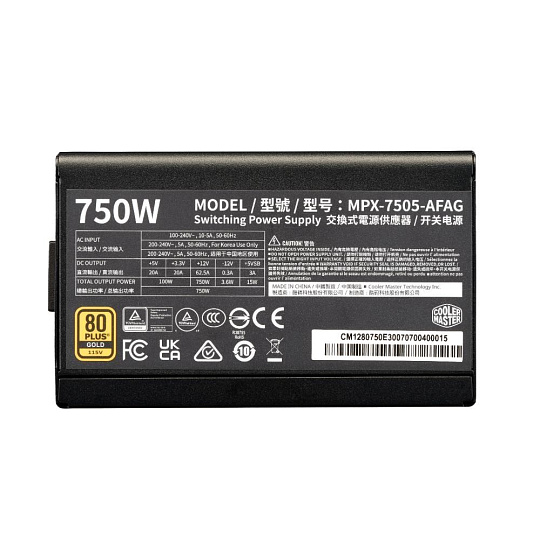 Cooler Master zdroj ELITE Gold 750W FM, 120mm, Plně modulární, 80 Plus Gold, ATX 3.1