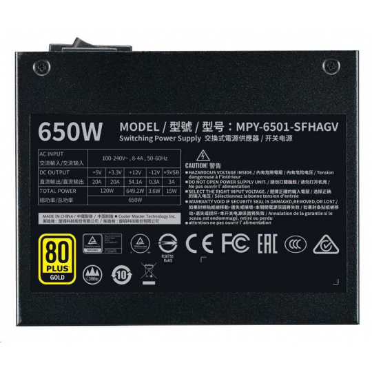 Cooler Master zdroj V650 SFX Gold, 650W, Plně modulární, 92mm, 80+ Gold